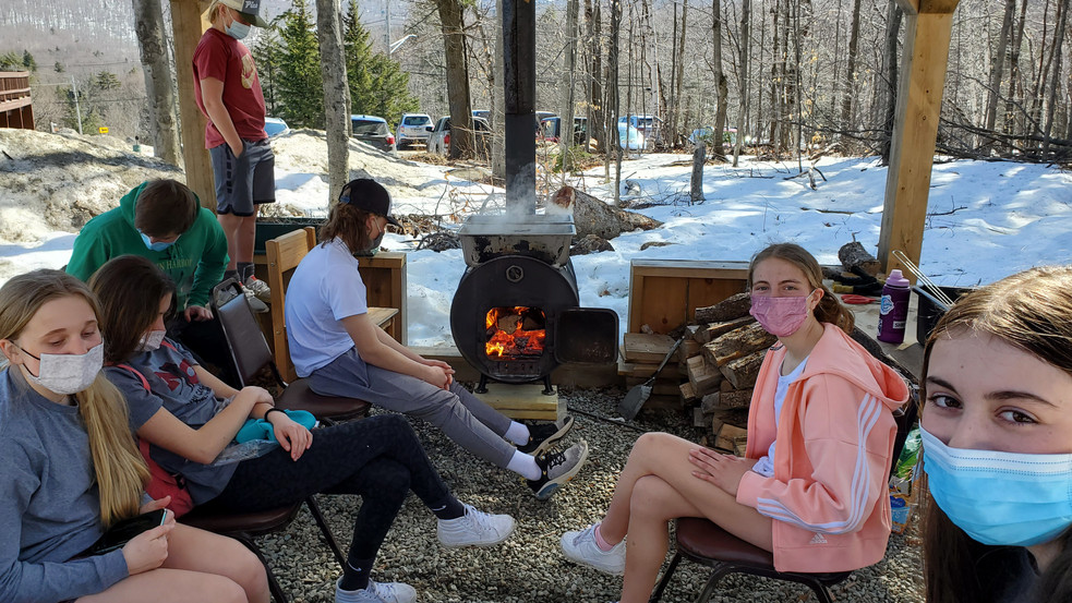 KMS Middle School students worked with faculty member Richard Morse to produce a few batches of homemade maple syrup. Students tapped trees around campus and boiled in our outdoor classrooms. They shared their finished product with the school community at our end of winter term bonfire. Maple syrup on vanilla ice cream is not as good as sugar snow, but it comes close! Check out some of the process: